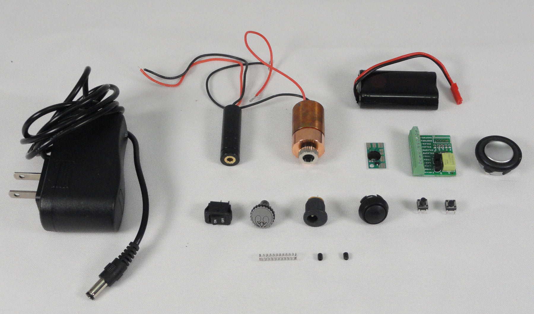 WARNING: The targeting laser module used in this kit is classified by the CDRH as a Class IIIA laser (< 5mW output). The hot laser module referred to in this kit is a Class IV laser (> 500mW output). For both modules, you must never stare into the beam or point at the eyes of people or animals. Direct or reflected exposure to the eye could result in permanent damage to vision. You should always wear approved protective laser eyewear when operating this device. This kit is not sold to minors. Users should not allow children to fire this laser gun unsupervised. Brightbeam Solutions is not responsible for damage inflicted or sustained by any operation of this kit by any person. This laser gun should not be operated in public, else you would be in violation of FDA regulations and could be fined or sent to prison. If you point the lasers at an aircraft, you could go to prison. SO DON’T BE AN IDIOT! You’ve been warned.